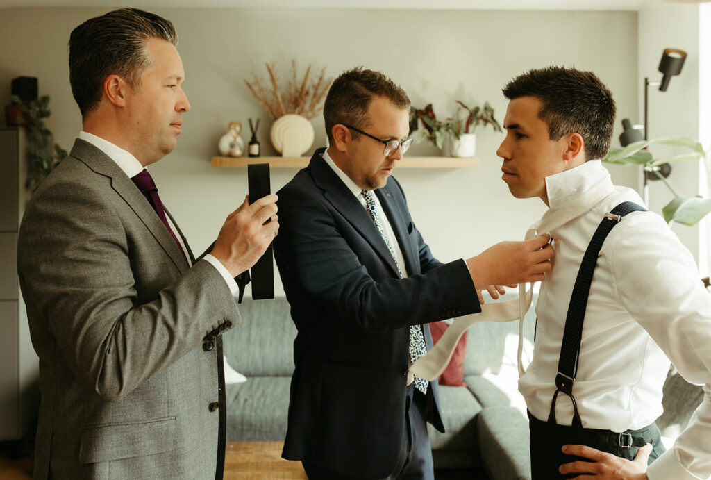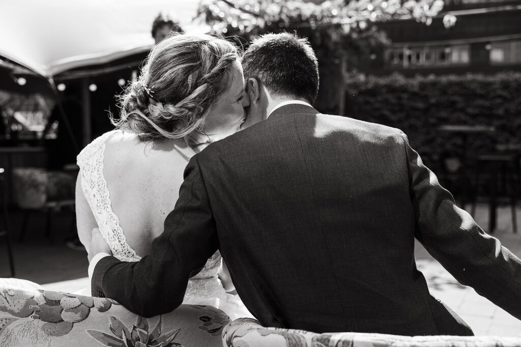 Als kers op de taart deden we een spontane stop bij Hotel New York – dé ultieme fotolocatie. En alsof dat nog niet genoeg was, werden we onverwachts uitgenodigd in een prachtig pand waar we ook foto’s mochten maken. Zulke momenten maken een trouwdag zó bijzonder en spontaan. Dat is precies waarom ik van mijn werk als trouwfotograaf hou.