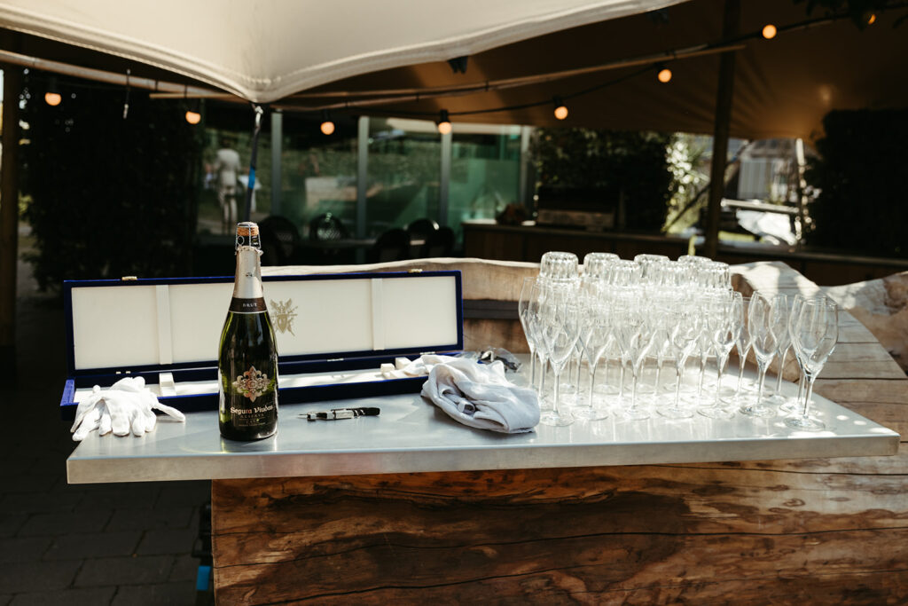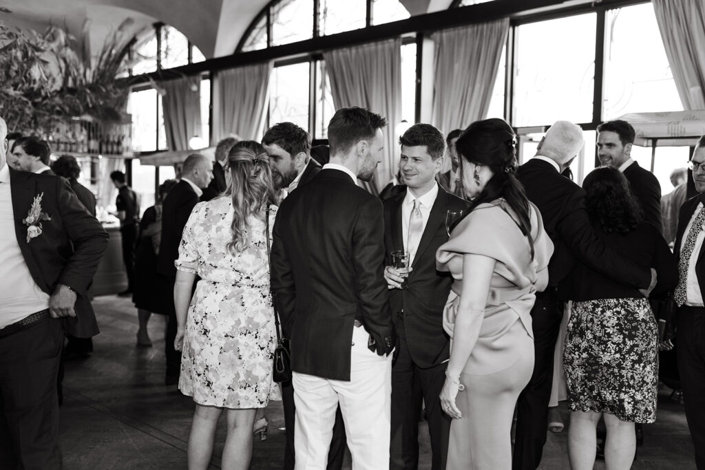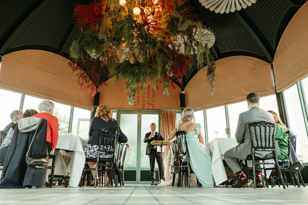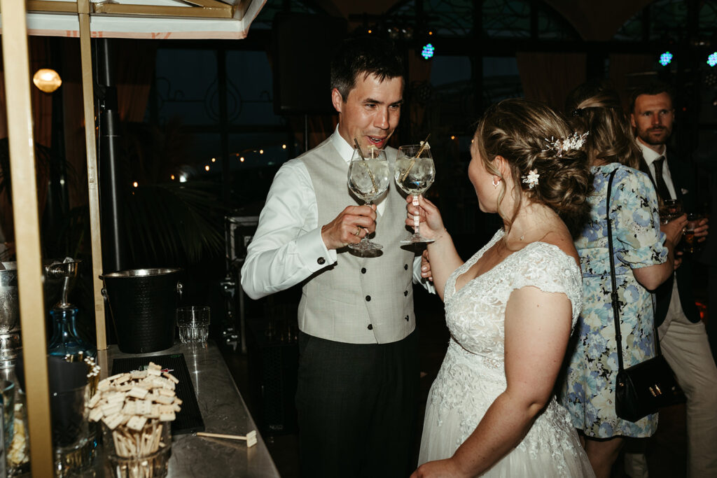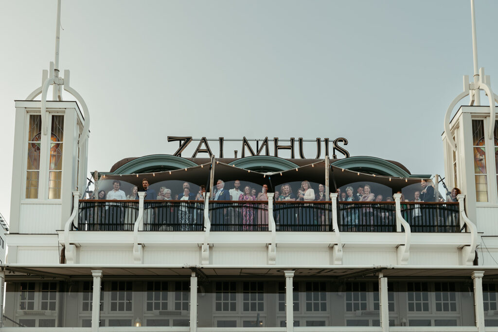 Na de ceremonie werd er champagne gesabreerd: een knallende toast op het leven, de liefde en op alles wat nog zou komen. De sfeer was warm, vrolijk en ontspannen. Precies de vibe die past bij trouwen in Rotterdam op een plek als het Zalmhuis.