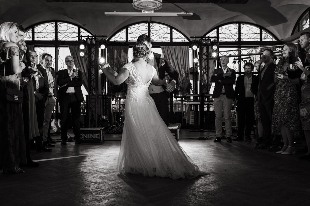 Bij aankomst werden het bruidspaar warm ontvangen, gevolgd door een prachtige openingsdans. Daarna barstte het feest los, met een DJ én een fantastische liveband. De sfeer was top, de dansvloer vol, en het was de perfecte afsluiter van een prachtige dag.