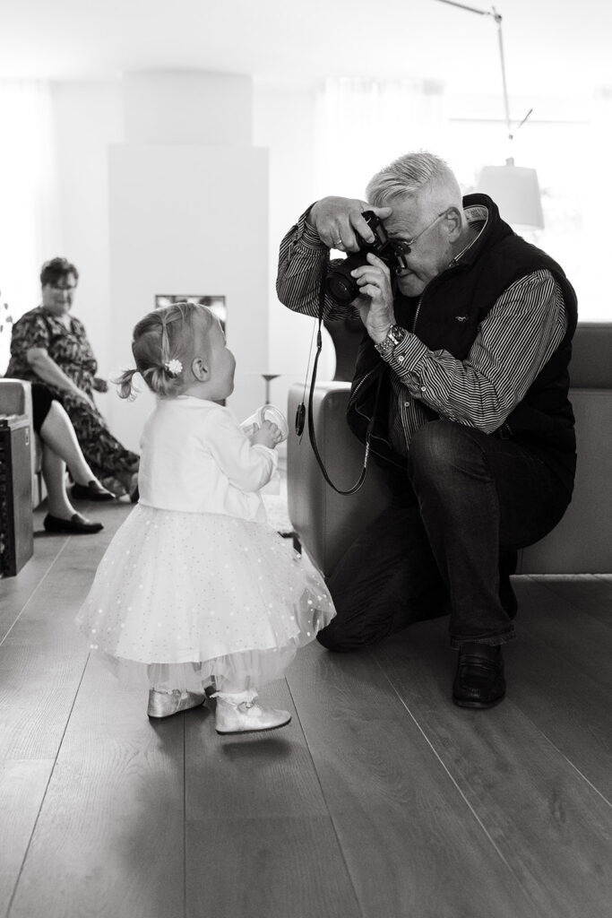 Deze dag draaide niet alleen om twee geliefden, maar ook om hun lieve dochtertje van twee jaar. Zij mocht de ringen brengen… al was dat niet helemaal volgens plan. Tijdens de ceremonie stal ze volop de show omdat ze onmogelijk stil kon zitten. Het was zo puur, eerlijk en heerlijk echt – precies zoals bruiloften horen te zijn.